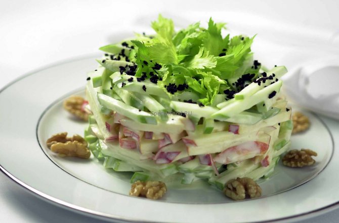 - Салат для свадебного банкета «Хрустящий» без майонеза