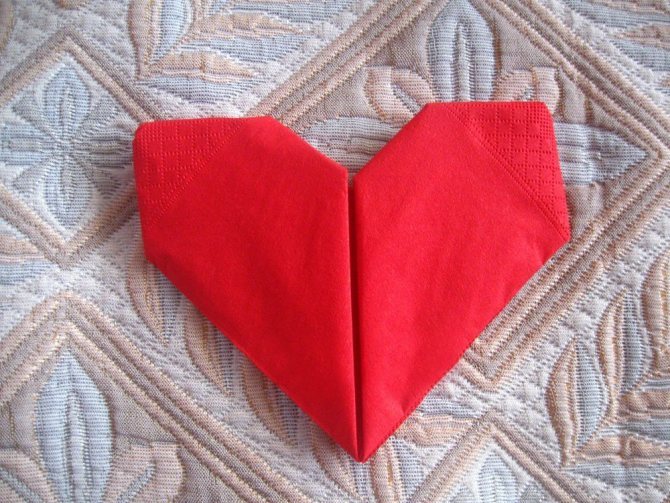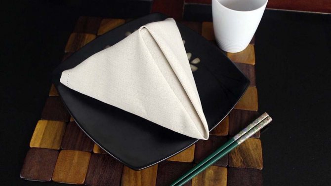 * Как и в первом случае, салфетку нужно сложить пополам по диагонали.