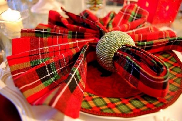 Выполняется преимущественно из ткани. Такое украшение выглядит очень нежно, но при этом стильно. А если праздничный стол будет украшен еще и живыми цветами, то получится превосходная яркая картина.