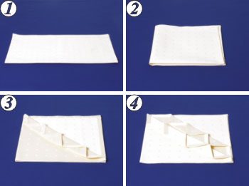 - Накрахмаленная ткань складывается в 4 раза до образования формы квадрата.