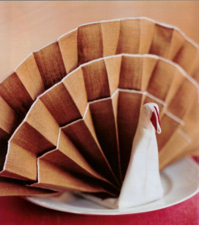 Довольно распространенной методикой складывания салфеток является создание настольного веера.