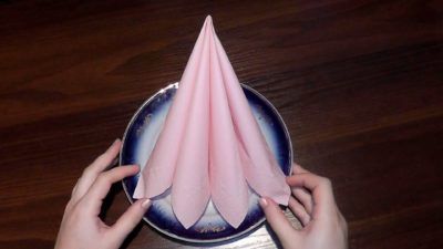 - при придании различных форм салфеткам, нужно как можно меньше мять и сворачивать их.