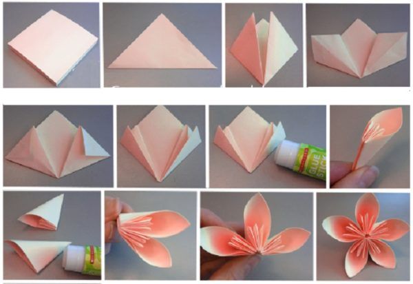 - Если в работе применяется прямоугольная форма, то одна сторона с меньшей шириной должна быть сложена в гармошку. При использовании квадратной салфетки выбор стороны не имеет значения. Изделие складывается гармошкой с шириной сгиба не больше 1,5 см. Собрав фигуру до середины, нужно проверить, чтобы сгибаемый слой идеально совпал с центральной намеченной линией.