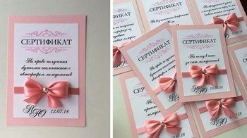 - Сертификат, гарантирующий получение подарка из свадебного путешествия.