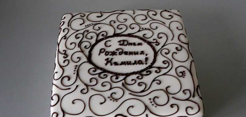 Для плоских поверхностей тортов любой формы и объема можно использовать простую и оригинальную техничку рисования шоколадом или цветным айсингом.