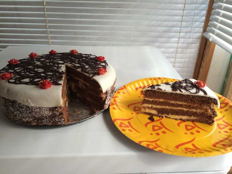 Покрыли торт кремом. Поставили в холодильник.