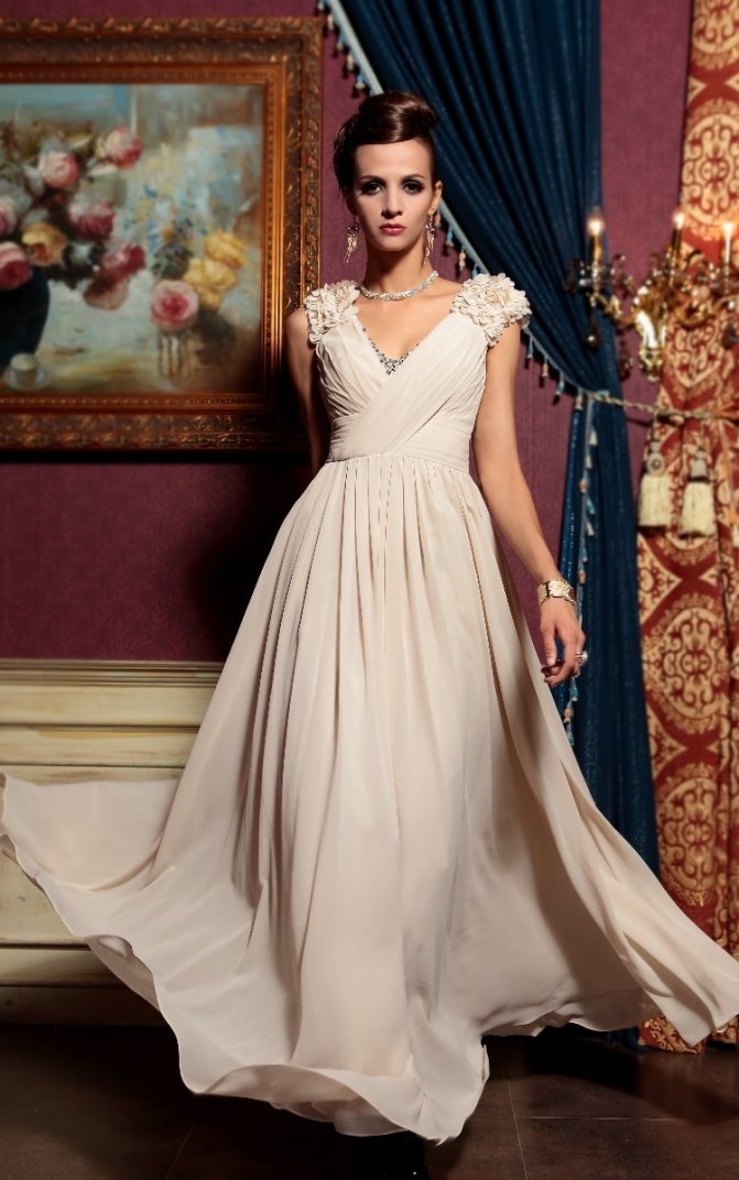 Греческое со шлейфом в пол скрывает недостатки фигуры и подходит, если нужно скрыть лишний вес и проблемные места.