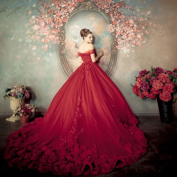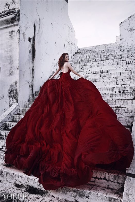 Для бордовой свадьбы больше подойдет платье классическое, удлиненное, с длинными рукавами и приталенным силуэтом. Интересно в этом цвете смотрятся и пышные средневековые наряды.