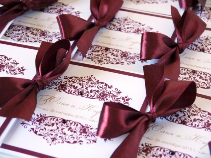 Обычно для гостей готовят маленькие памятные сюрпризы. На бордовой свадьбе это могут быть корзиночки с красными ягодами, наборы конфет ручной выделки, мешочки с элитным чаем с розовыми лепестками, брелоки в виде роз или сердечек с инициалами гостя или молодоженов, магниты со свадебной символикой.