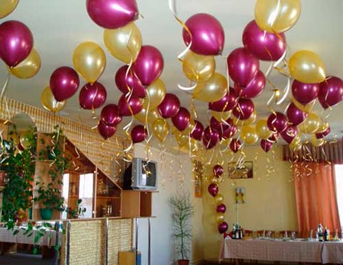 Украшать начинайте с лестничной площадки, привязав к лестнице шарики, банты из лент. Входную дверь украсьте цветами или драпировкой из ткани, своими фото.
