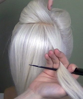 Этот красивый пучок можно сделать с резинкой-невидимкой, которая будет отвечать за надежность этой конструкции.