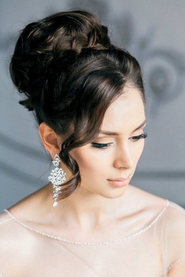 Высокий пучок в свадебных прическах позволяет сделать образ более торжественным, при этом девушка становится изящной. При такой укладке шея удлиняется и даже невеста кажется выше ростом.