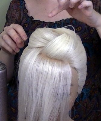 Оставшиеся локоны нужно прикреплять в разброс к пучку, чтобы полностью покрыть его. Затем все фиксируется лаком.