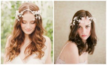 Нежность и женственность образа может подчеркнуть прическа с цветочными ободками, при которой все волосы завивают, а затем собирают так, чтобы лоб оказался полностью открытым. Аксессуар надевают на подвитые локоны.
