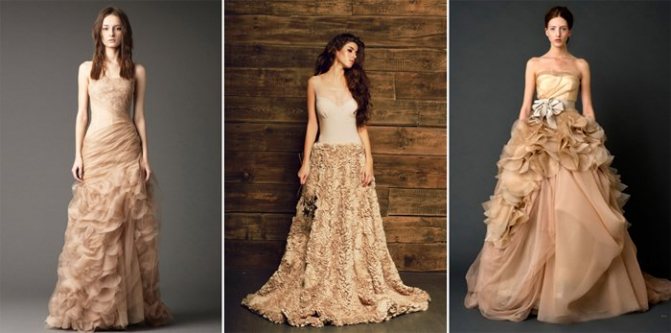 Свадебные платья в новых дизайнерских коллекциях отличаются пышностью, невесомыми кружевами, создающими легкий эффект прозрачности. С нарядами цвета ivory работают Sherri Hill, Vera Wang, Oscar de la Renta, Claire Pettibone и другие.