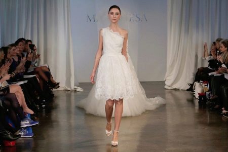Особо эффектно смотрятся ассиметричные модели, а также изделия с глубоким вырезом в области спины и неординарными декорирующими элементами. Посетив свадебный салон, стоит первым делом рассмотреть именно такие варианты.