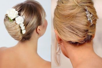«Ракушка» – выбор настоящих элегантных леди. Если у вас собирается большая и пышная свадьба по всем канонам торжества, как у принцессы, то эта причёска для вас. А украсить волосы гребнем можно на стыке самой ракушки и головы или ближе к лицу.