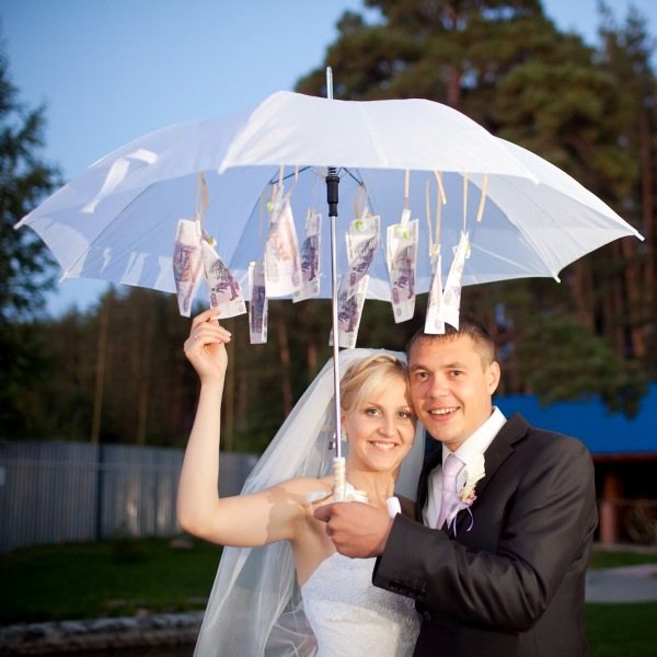 Фото свадебного денежного зонта от гостей