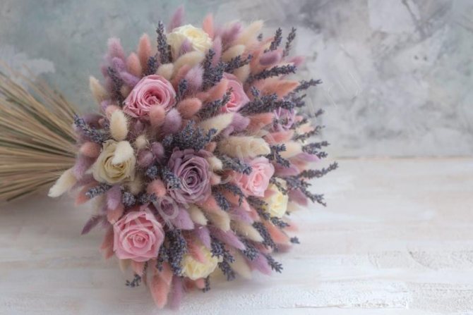 С лавандой и сухоцветомИсточник kupit-cvetov.ru