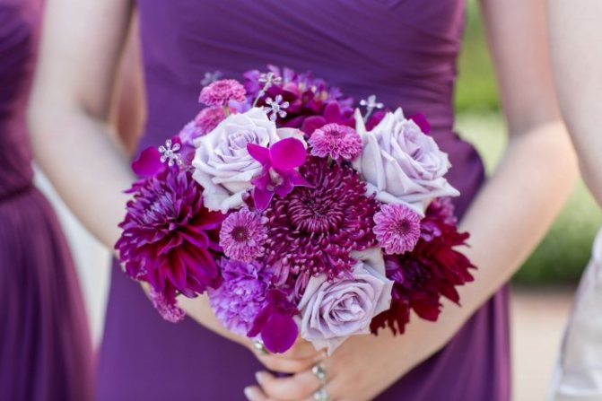 Свадебный букет в фиолетовом или сиреневом цвете