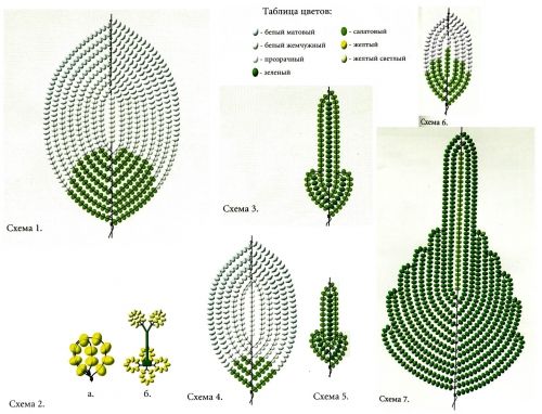 Собирать эустому из бисера следует по частям. Начнем с того, что сделаем все заготовки. Самое легкое в изготовлении цветка – это создание сердцевинки. Берем проволоку длиной 20-30 см и нанизываем на нее 6 бисеринок. Фиксируем их на середине так, чтобы получилось маленькое кольцо. Теперь нужно набрать на один из концов проволоки еще 4 бисерины. Рабочий конец продеваем через 4 бисерины. Должен получиться круг с заполненной серединой. Как это сделать, можно посмотреть на картинке выше. Таким образом нужно создать от 7 до 10 тычинок. Теперь необходимо скрутить все проволоки в единое целое так, чтобы получилась готовая сердцевина.