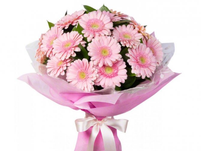 Букет из нежно-розовых гербер Букет из розовых гербер с декором