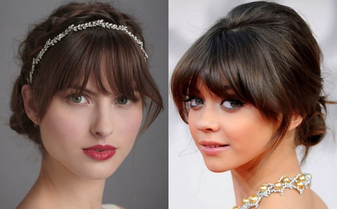При создании свадебного пучка – челка станет своеобразной изюминкой. Несколько высвободившихся завитков, обрамляющих лицо, придадут прическе шарм. Также слишком высокий лоб желательно прикрыть челочкой, которая может быть любого вида. Все зависит от выбранного образа.