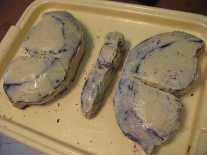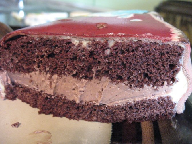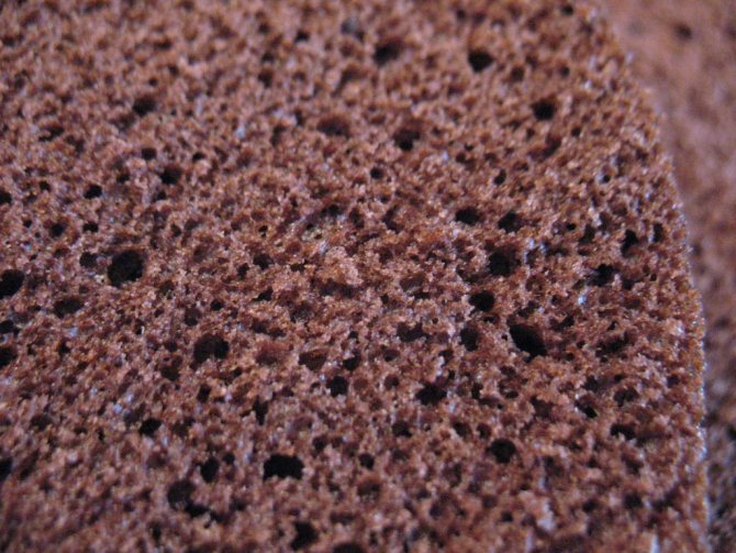 Основу разрезаем на два коржа. Вот такие коржи получились в разрезе, пористые и пушистые.
