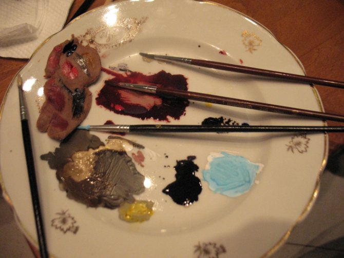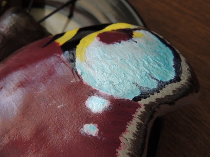 Раньше я никогда не ничего делала подобного, потому разобраться в самом процессе пыталась здесь https://kashalot.com/club/post-57806/ Спасибо всем за помощь и подсказки! Даю ссылку на эту тему, возможно Вы для себя почерпнете что-то полезное из этого диалога. Для выполнения рисунка мне понадобились гелевые красители: бордовый, коричневый, темно-коричневый, голубой, черный, пастельный, белый, терракотовый. Часть красителей покупала в интернет-магазине https://viptortik.com.ua/g4105887-krasiteli-pischevye https://viptortik.com.ua/p1360101-krasitel-gelevyj-goluboj.html Краситель гелевый — Голубой 100 мл https://viptortik.com.ua/p1365116-krasitel-gelevyj-chernyj.html Краситель гелевый — Черный 100 мл https://viptortik.com.ua/p1360089-krasitel-gelevyj-korichnevyj.html Краситель гелевый — Коричневый 100 мл https://viptortik.com.ua/p16572243-gelevyj-krasitel-burgundy.html https://viptortik.com.ua/p16579428-gelevyj-krasitel-dark.html https://viptortik.com.ua/p17142268-pastelnyj-gelevyj-krasitel.html Пастельный гелевый краситель — Scarlet – Алый https://viptortik.com.ua/p10105568-suhoj-krasitel-sugarflaire.html Сухой краситель Sugarflaire — White — Белый 7 ml Белого и терракотового на этой фирме не оказалось, потому брала другого производителя, ссылки на него нет. Некоторые из этих ссылок уже не действительны, но их можно глянуть через кеш Google. https://webcache.googleusercontent.com/search?q=cache:https://www. дальше нужный вам адрес. А также купила перламутровые красители в порошке (кондурин): красный искристый https://viptortik.com.ua/p5387740-kandurin-krasnyj-iskristyj.html перламутровый голубой https://viptortik.com.ua/p5387760-perlamutrovyj-krasitel-goluboj.html перламутровый серебряный https://viptortik.com.ua/p5387758-perlamutrovyj-krasitel-serebro.html Большой выбор подобных красителей есть по ссылке https://viptortik.com.ua/g382444-kandurin-perlamutrovyj-krasitel Очень советую обратить внимание на магазин Виптортик, там есть много полезного для кулинарных шедевров. Перед тем как приступить к росписи торта, нужно обязательно опробовать красители на кусочке мастики, чтоб увидеть какой цвет получится. В качестве растворителя нельзя использовать воду, она растопит мастику. Если нужно чуть разбавить краски, то берем спирт, обмакиваем буквально кончик кисточки. Мне пришлось смешивать бордовый и красный, потому что красный цвет оказался дико-ярко-красным, и близко не похожим на цвет натуральной бабочки. А бордовый был очень темным. Желтый цвет смешивала с белым, так как краситель был прозрачным.