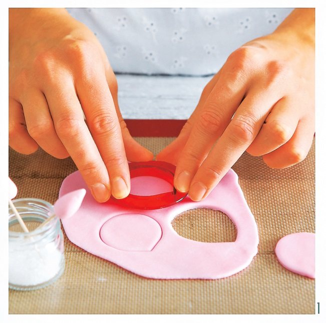 3Далее берем круглую форму для работы с кондитерской пастой и вырезаем из пласта много кружочков.