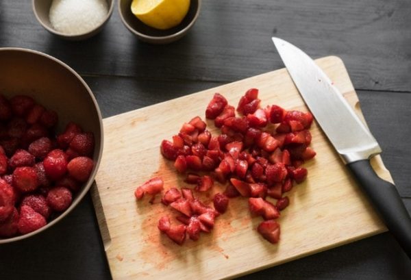 Для приготовления торта можно использовать свежую или замороженную клубнику. Если в наличии имеются только замороженные ягоды, размораживать их предварительно не нужно.