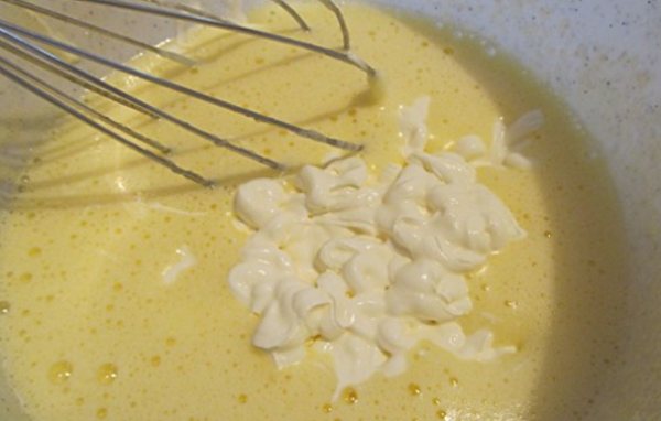 - Займемся приготовлением крема. Его готовим из сливок и сахара. Все компоненты хорошо взбиваем. После чего вводим какао и все перемешиваем ложкой.