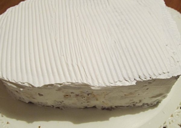 Растительные сливки – это эмульсия из растительного масла и жиров, а также стабилизаторов. Вкус такого продукта очень схож с натуральным. Растительный аналог более плотный, густой, с устойчивой консистенцией. По рецепту, который будет приведён ниже, из одного литра таких сливок можно приготовить три литра взбитой пены для украшения торта. Такие сливки выпускаются в удобных для декорирования ёмкостях с насадками. Их часто можно встретить в маркетах – взбитые сливки в баллончике.