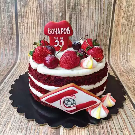 Для мальчика-спортсмена идеальным вариантом станет торт в виде мяча. Ничего сложного в приготовлении нет. Достаточно испечь круглые коржи и после полного промазывания кремом придать изделию шарообразную форму.