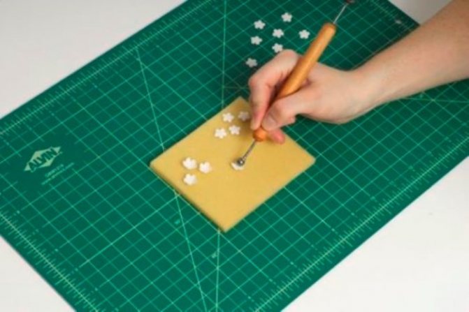 На раскатанной мастике можно и самому вырезать бантики, снежинки, полосочки и многое другое, а потом приклеивать на десерт.