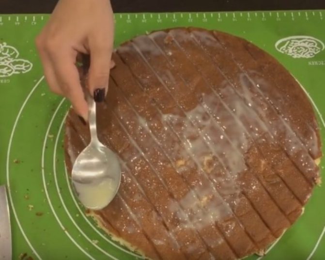 Перед нарезкой необходимо смачивать нож в горячей воде или нагревать, в противном случае зеркальная глазурь потрескается.