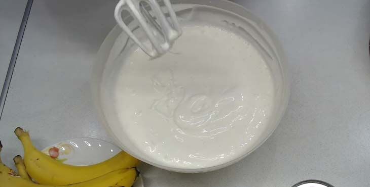 - Когда образуется плотный воздушный крем, добавьте желатин, замоченный в сливках, и ещё раз хорошенько все взбейте.