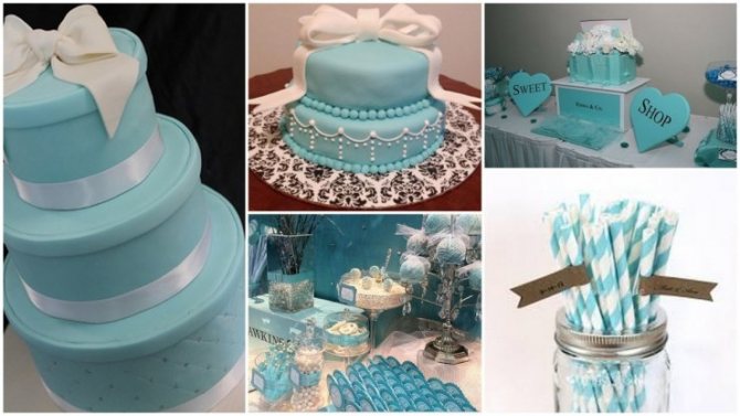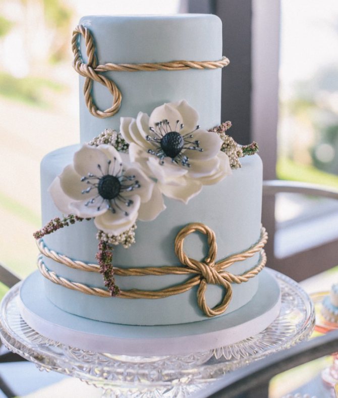 - разнообразный сладкий синий декор: цветочные композиции, ленты, банты;