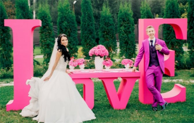 Буквы на свадьбу можно купить в магазине или сделать на заказ. Но это может потребовать дополнительные средства, которые может не хватить в связи приближающегося торжественного мероприятия.