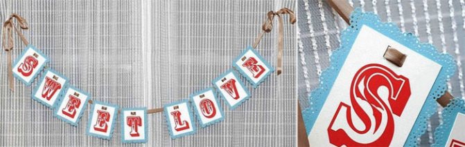 - Проденьте ленту через буквы и повесьте в нужном месте.