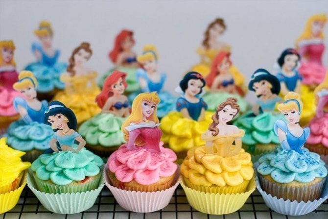 Палочку вставлять не обязательно. Вы можете просто вставить картинку в крем. Крем подойдет не каждый! Подробно варианты покрытия рассмотрены здесь. Вафельная картинка хорошо держит форму, она будет ровно стоять. Идеальный вариант для капкейков с принцессами.