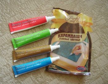 Гелиевые карандаши представляют собой набор тюбиков с кондитерским гелием разного цвета. Такими карандашами очень удобно пользоваться для нанесения надписей на торт.