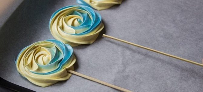 Топперы на торт из безе — альтернативный вариант трудоемким и не всегда доступным декорам из ягод, мастики и печенья. В рецепте приготовления нет ничего нового — это классическое тесто для безе, только отсаженное в форме цветочков и одетое на палочку. Легкое по весу и недорогое по стоимости, вкусное и красочное современное изделие.