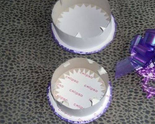 4. Накройте последний ярус торта «крышкой» — картонным кружком диаметром 15 см , приклеив его тем же способом.