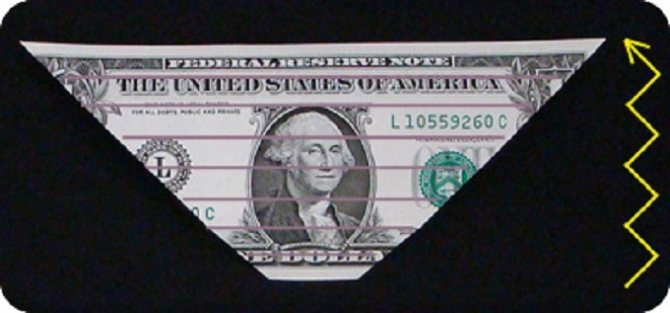 2. Приложите денежную трубочку к бортику таким образом, чтобы внешний кончик купюры прилегал к цилиндру и «смотрел» влево».