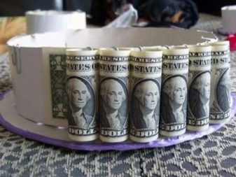 В качестве банкнот, которыми будет украшен свадебный тортик, могут выступить как национальная, так и иностранная валюта, все будет зависеть от величины бюджета, который вы готовы потратить на подарок молодожёнам. Доллары, например, можно разменять на купюры небольшого номинала.