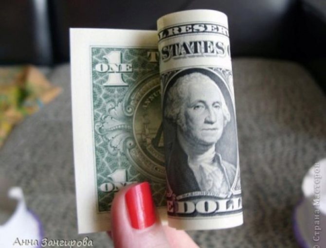 1. Возьмите одну купюру, сверните ее в аккуратную, но не тугую трубочку диаметром 2,5 см
