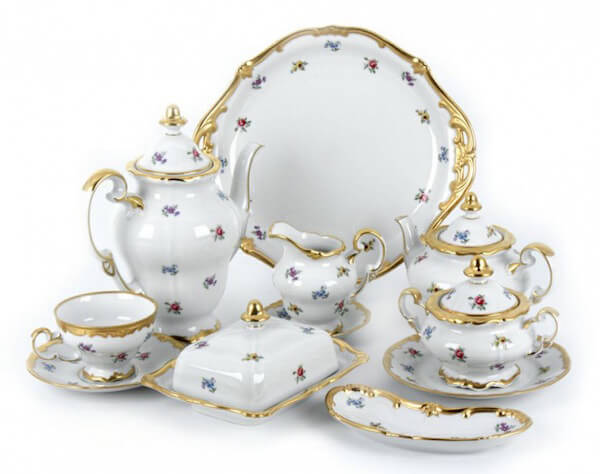 - Столовый сервиз из фарфора, рассчитанный на 6 или 12 персон. В составе набора — тарелки глубокие и мелкие, соусницы, супницы. Такой презент на двадцатилетнюю годовщину бракосочетания придется по душе и родителям, и близким родственникам дарителей. Жене от мужа тоже приятно будет получить такой красивый и полезный подарок.