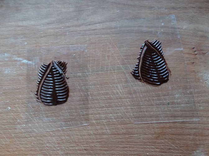 Расческа. Полоски, которые оставляет расческа на шоколадной массе, очень красивые. Это могут быть перепонки на листочках, перья на крыльях и т.д.