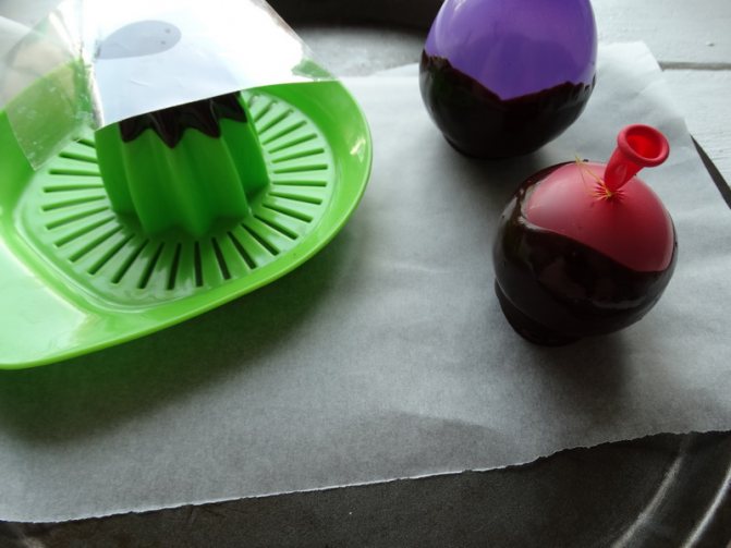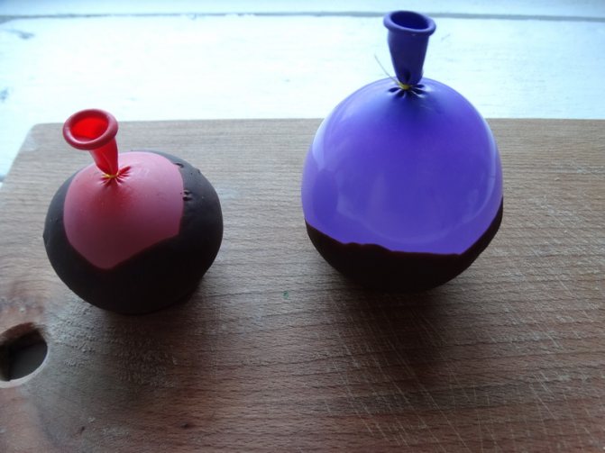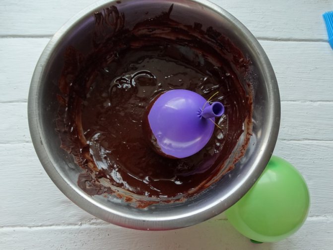 Когда шоколад хорошо застынет, можно будет спустить воздух с шариков и аккуратно отделить их шоколад от шариков.